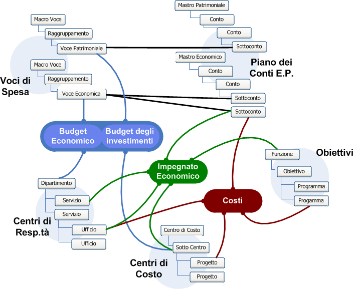 Alla base della gestione vi è pertanto la presenza delle quattro dimensioni di bilancio (denominate genericamente “piani dei conti”), indipendenti per quanto attiene la loro definizione, interdipendenti per quanto attiene le modalità di budgeting, trattamento e rendicontazione:
