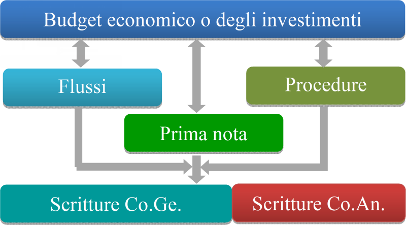 La contabilità civilistica in quanto tale è tuttavia una contabilità esclusivamente consuntiva, il cui scopo è rilevare le operazioni che comportano variazioni economico e/o patrimoniali dopo il loro verificarsi. Nulla è invece normato relativamente alla presenza di un budget economico ed alle funzioni di autorizzazione e controllo che ne costituiscono gli elementi essenziali per la corretta tenuta (decisioni di spesa, obbligazioni previste e autorizzate). Tali aspetti, cosiddetti gestionali, sono pertanto lasciati alla libera discrezionalità delle aziende, che possono dotarsi di qualunque sistema di budgeting e di controllo di gestione ritengano utili ai propri fini in dipendenza delle dimensioni e dell’articolazione dell’attività, non necessariamente integrato al sistema di scritture. Con l’introduzione del budget economico come obbligo normativo, e relative esigenze di rendicontazione, il modello di gestione non può più prescindere dall’adozione di un sistema gestionale di scritture extra-contabili per la definizione e formalizzazione dello stesso, il monitoraggio della disponibilità e l’autorizzazione della spesa, più o meno vincolante, che anticipi le rilevazioni contabili e renda possibile il processo decisionale sottostante alle decisioni di spesa. Per ragioni operative e di tempistica legata ai processi decisionali è certamente utile che tale sistema gestionale sia integrato al sistema di scritture, dal quale deve trarre i dati utili per la determinazione dei saldi economici effettivi in tempo reale, e sia in grado di alimentare direttamente queste ultime fornendo adeguate funzionalità per la formazione delle poste economico patrimoniali.